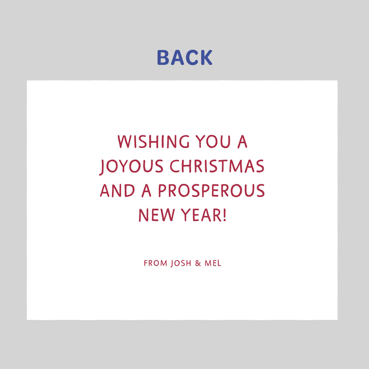 Our holiday cards are printed on smooth white paper. Choose between 50, 75, or 100 sets of cards and envelopes packaged in a corrugated box.